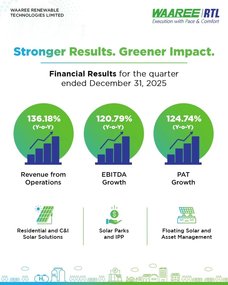 Waaree Renewable Technologies Limited, the EPC arm of the Waaree Group, has announced robust unaudited financial results for the third quarter and nine months ended December 31, 2025, reflecting strong execution capabilities, rising demand for solar infrastructure, and expanding opportunities across India’s renewable energy ecosystem.